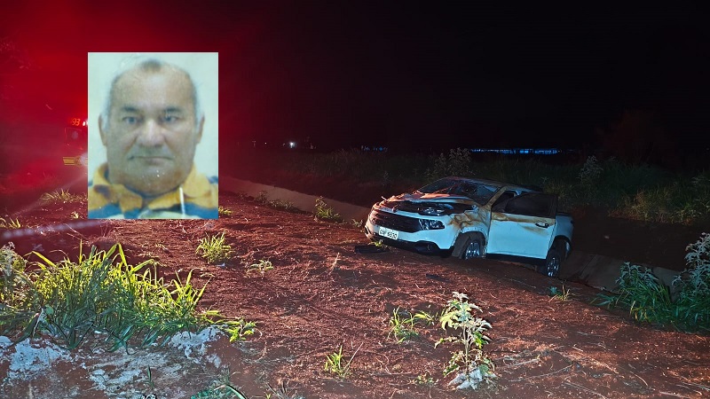Um grave acidente registrado na manhã deste domingo (9) tirou a vida de Osvalderlei Correia Vieira, de 72 anos, morador de uma fazenda na região do Guaçu, em Dourados. Ele conduzia uma Fiat Toro branca, com placas de Campo Grande, quando perdeu o controle da direção na rodovia que liga Dourados a Deodápolis, entre os distritos de Lagoa Bonita e Indápolis.