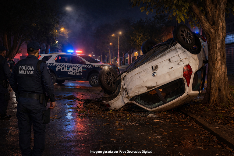 Equipes iniciaram buscas e localizaram o veículo na Rua Aquidauana. O condutor desobedeceu a ordem de parada, dando início a uma perseguição por diversas ruas. Durante a fuga, ele ignorou sinalizações até colidir com uma viatura no cruzamento das ruas Major Capilé e Caiuás.